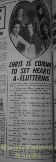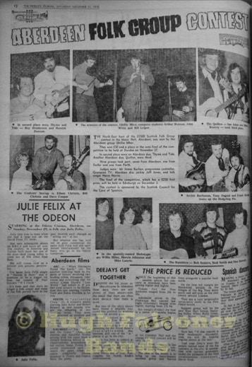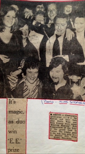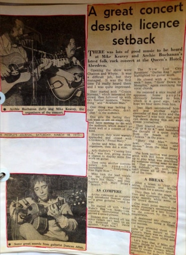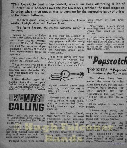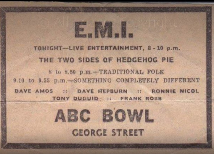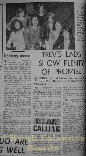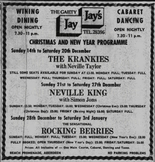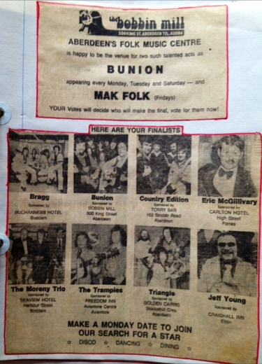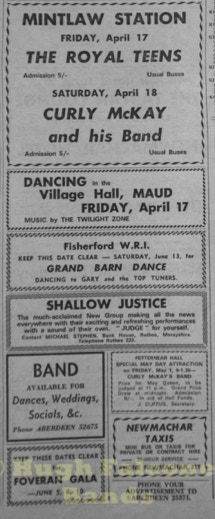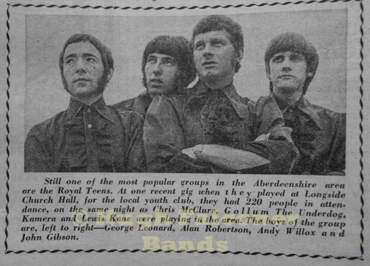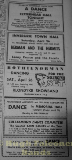 The Aberdeenshire country venues were controlled by Bert Ewan from Inverurie, fondly known as “Bapper”, being an ex-baker. Bert was known to check out how new bands were going down at the dance venues, he would turn up in his favourite jumper, and slippers.
