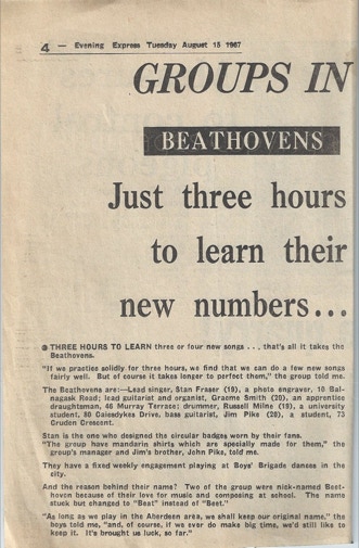 Bands in the northeast of Scotland relied on a number of booking Agents: Gordon Hardie who looked after the Aberdeen area, Albert Bonici based in Elgin had the northern area under his control.